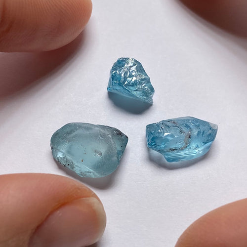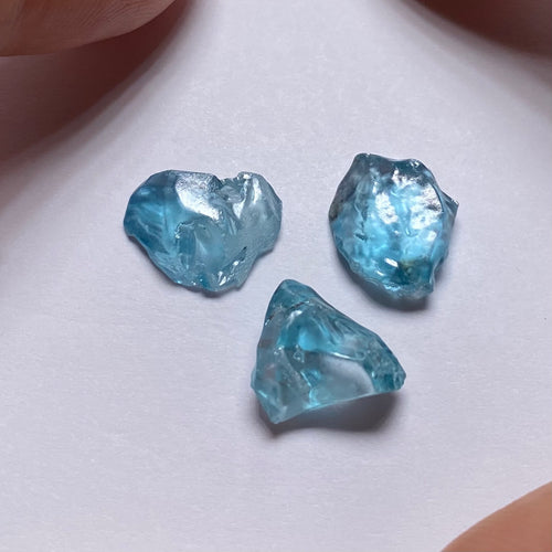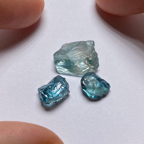 Cambodian Blue Zircon is the King of Zircon- but it doesn't start out that way. Natural Cambodian Zircon is a dark brown and hard to see inside. To help predict how blue it might heat, one of the tests is to hold it up to the sun and look for flashes of red...those red flashes are a good indiction it will heat a nice blue, but there are no guarantees....