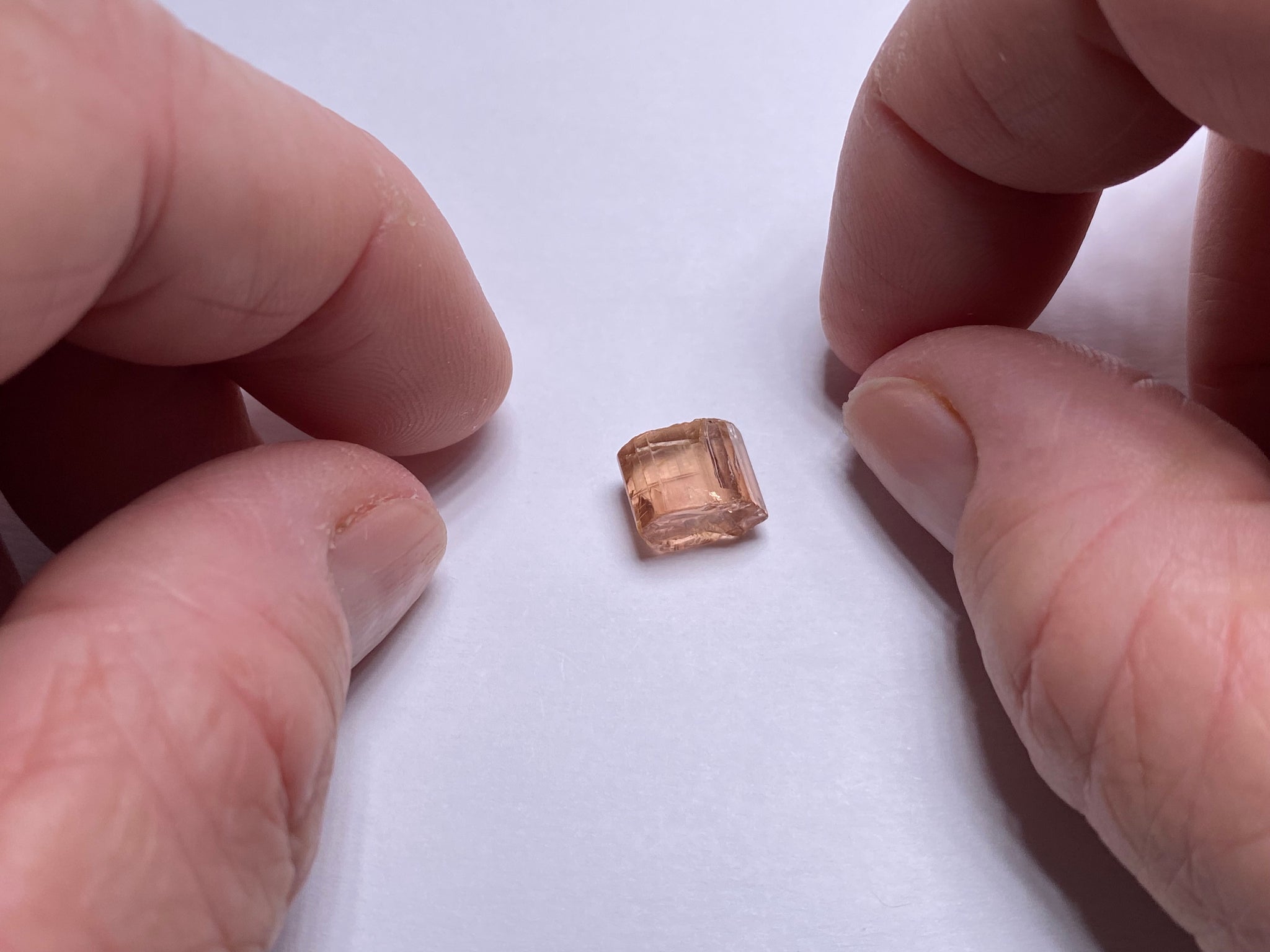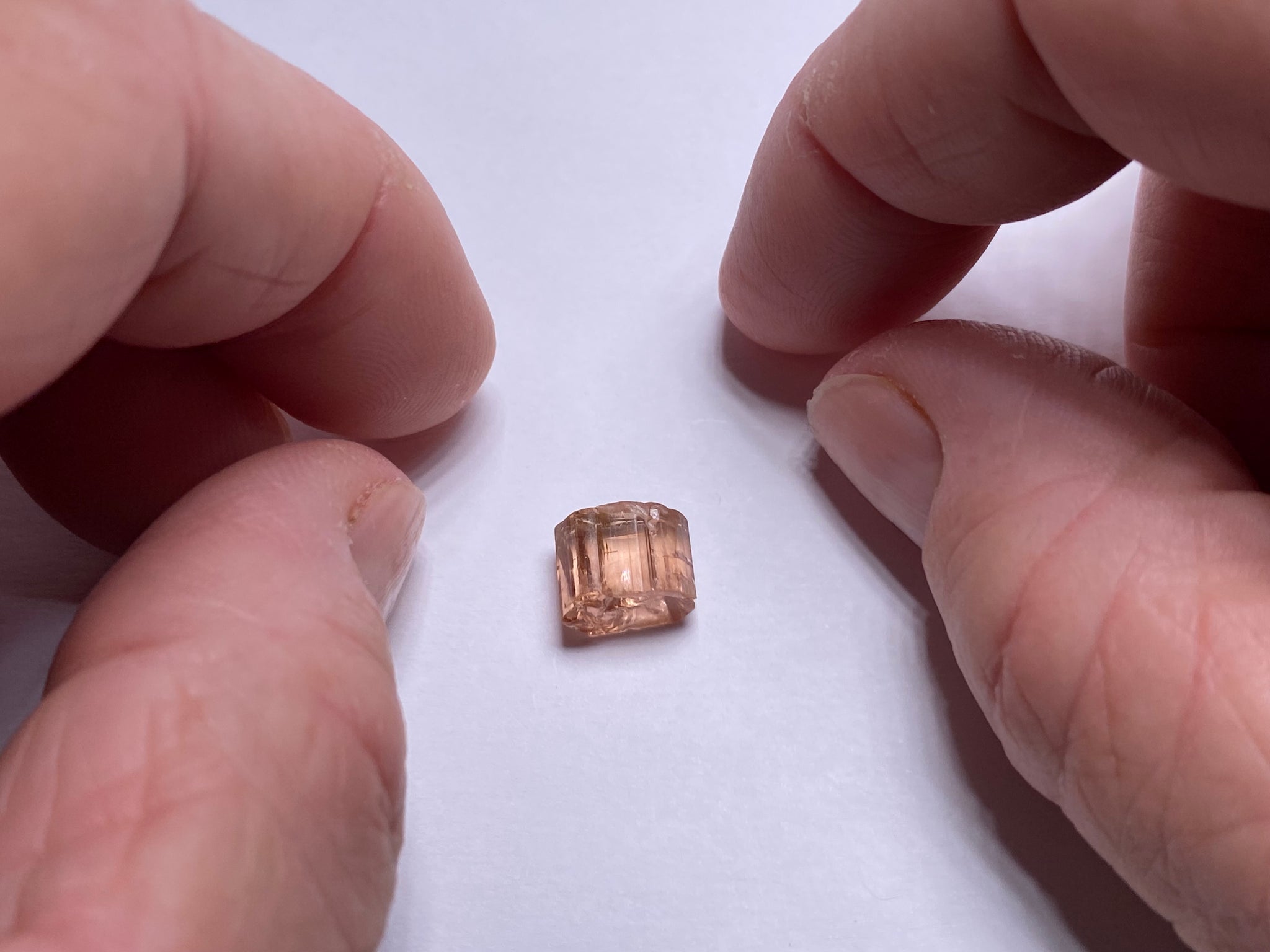 Champagne Tourmaline from the Rubaya Mine in Eastern DRC. Warm peach-gold C-axis