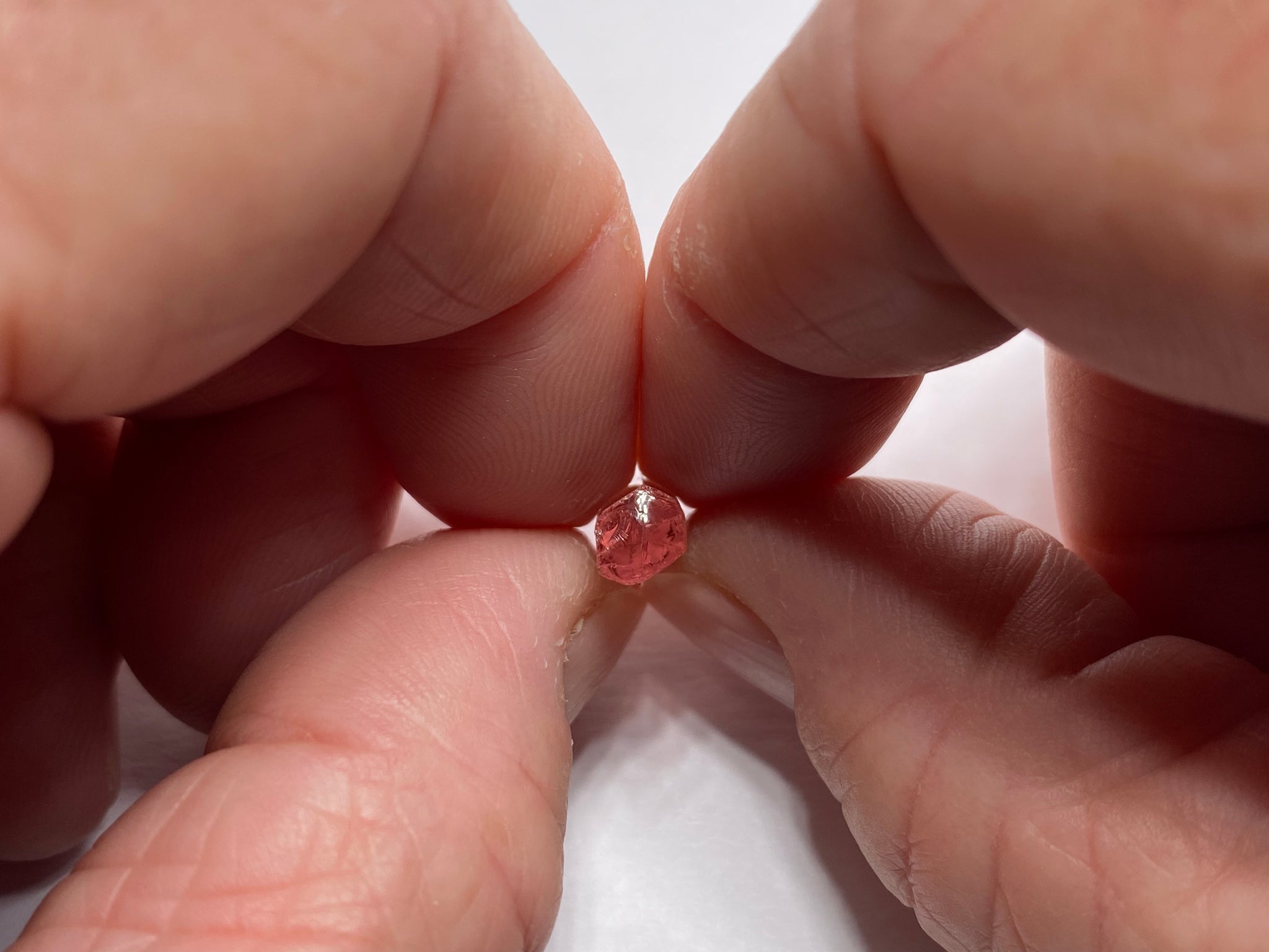 Coppery orange-pink Tourmaline from the Rubaya Mine in Eastern DRC.  Pink C-axis