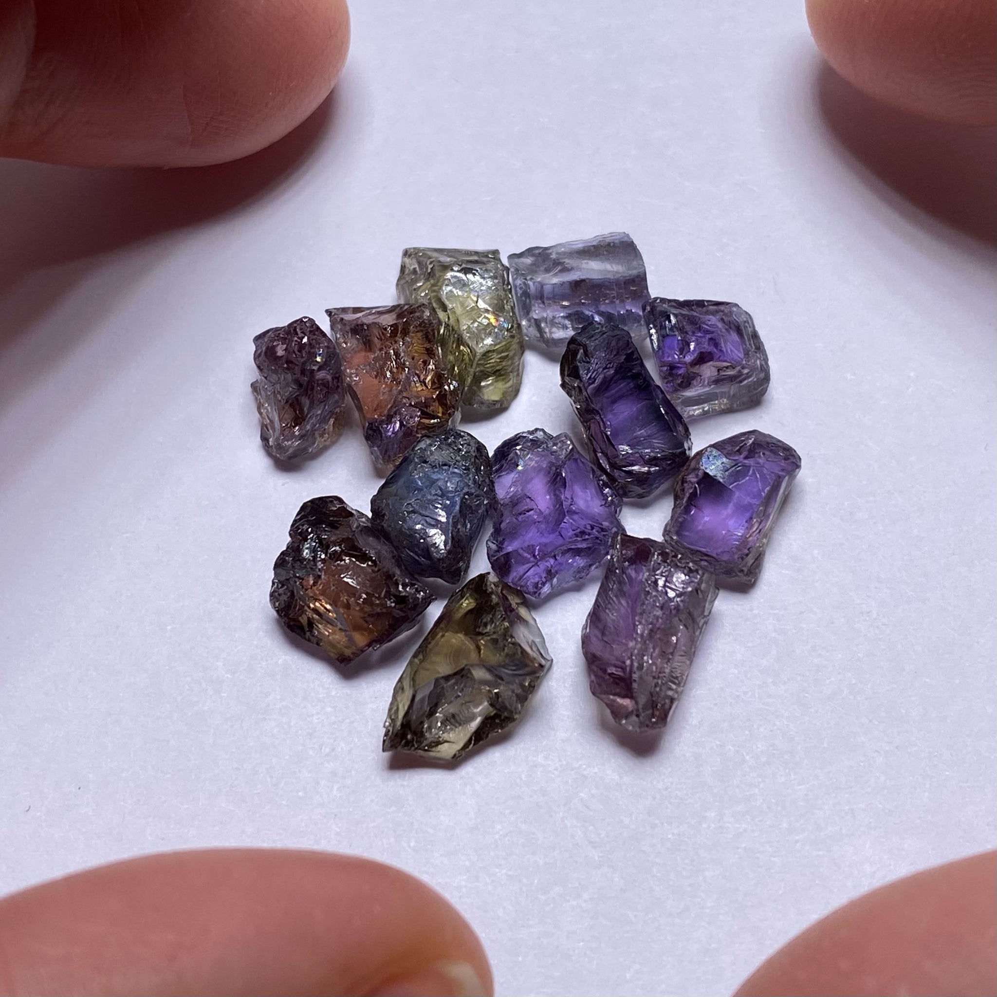 12 pieces / 6.98 grams / 34.9 total carats / 2.9+ carat average / eye clean or better