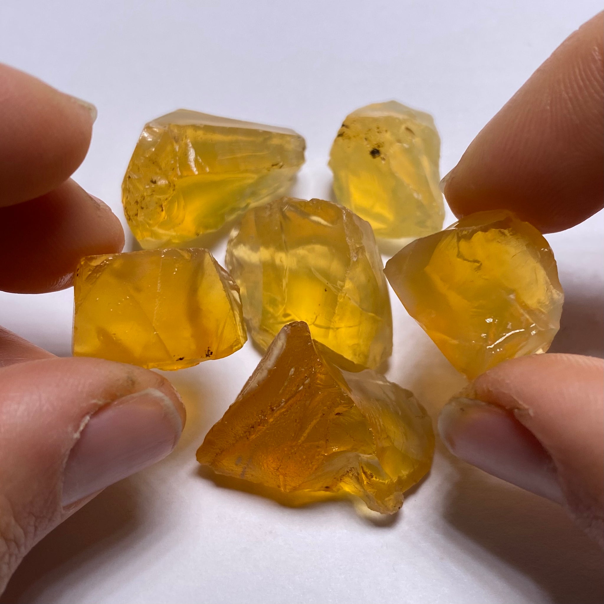 6 pieces / 25.342 grams / 126.71 carats / 21.11+ carat average / clean