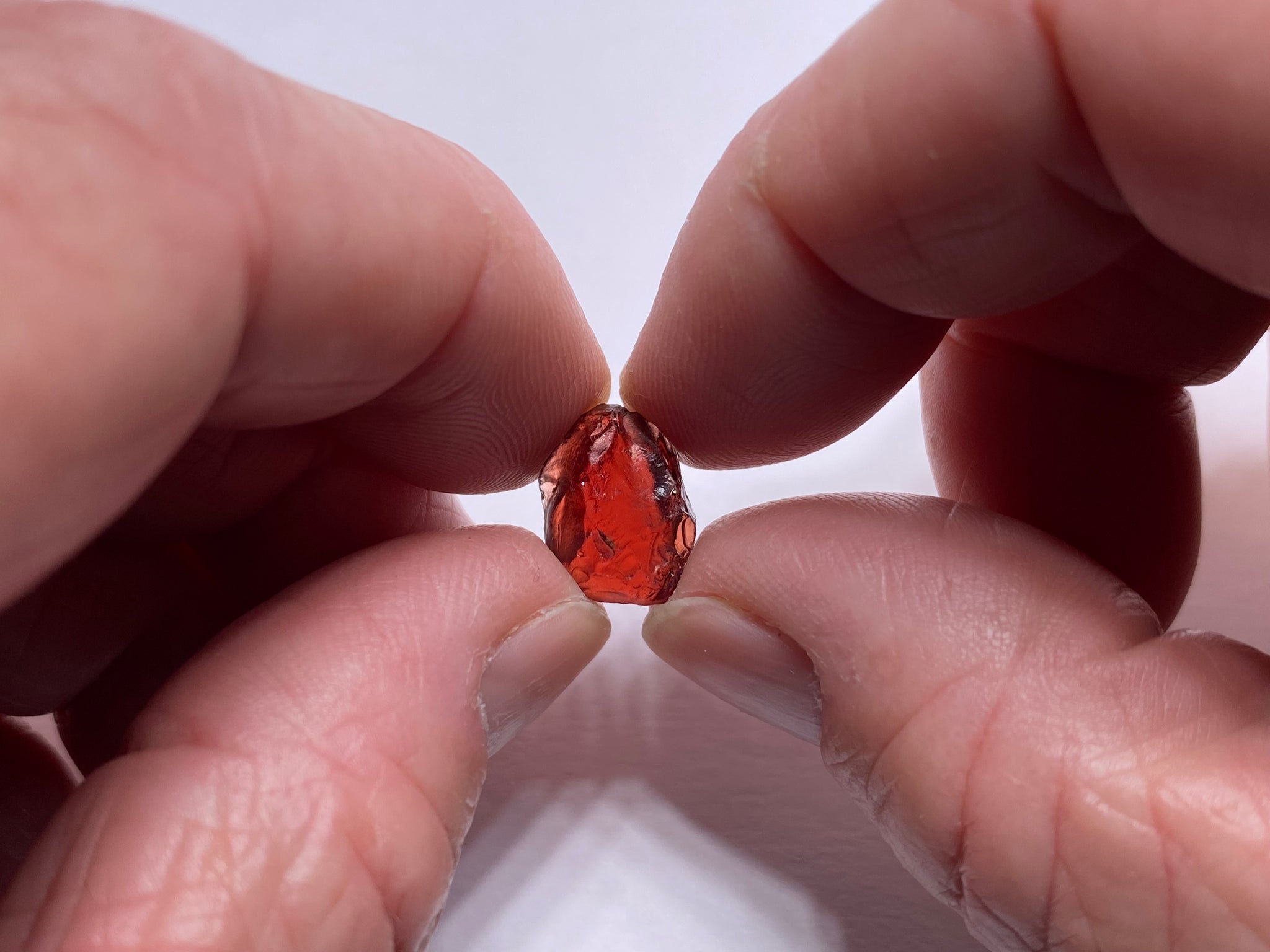 A new find of Malaya Garnet in  the deeper end of the Malaya color range, showing rich reddish-orange tones with a warm, internal glow. Stones of this depth are less common and often display a subtle mix of ember and rose hues depending on the light source.