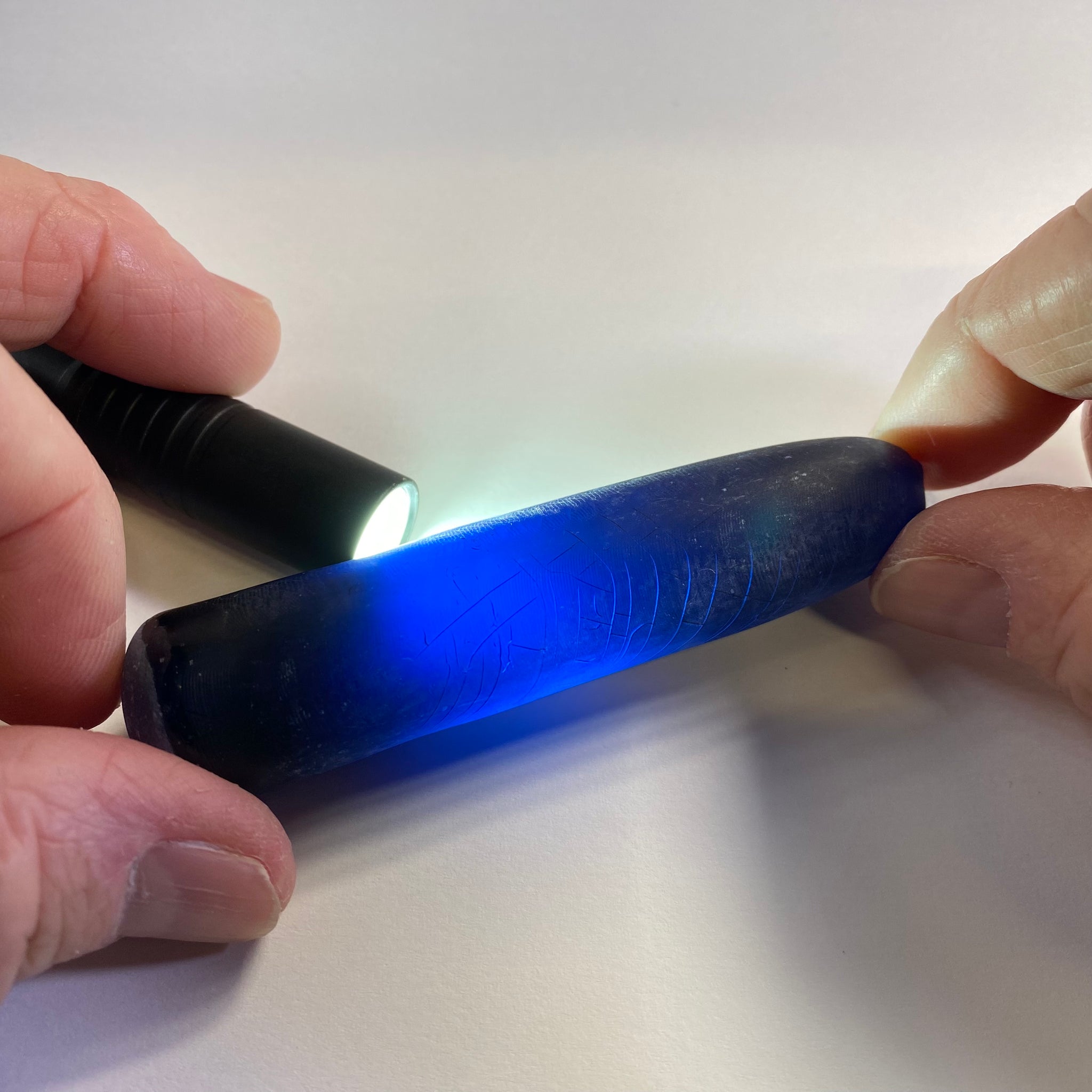 Synthetic Spinel boule color #113 — a deep, saturated dark blue. This is a full, uncut boule