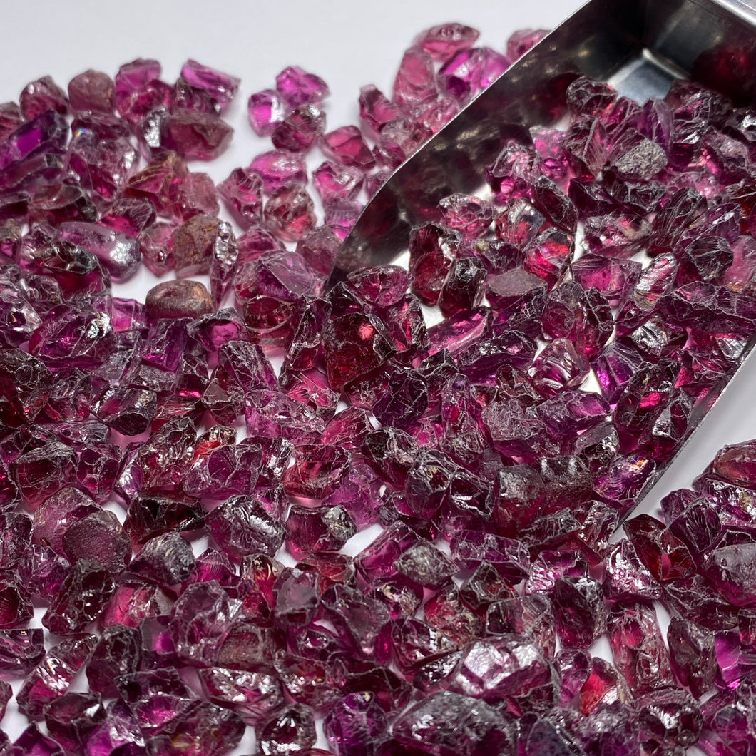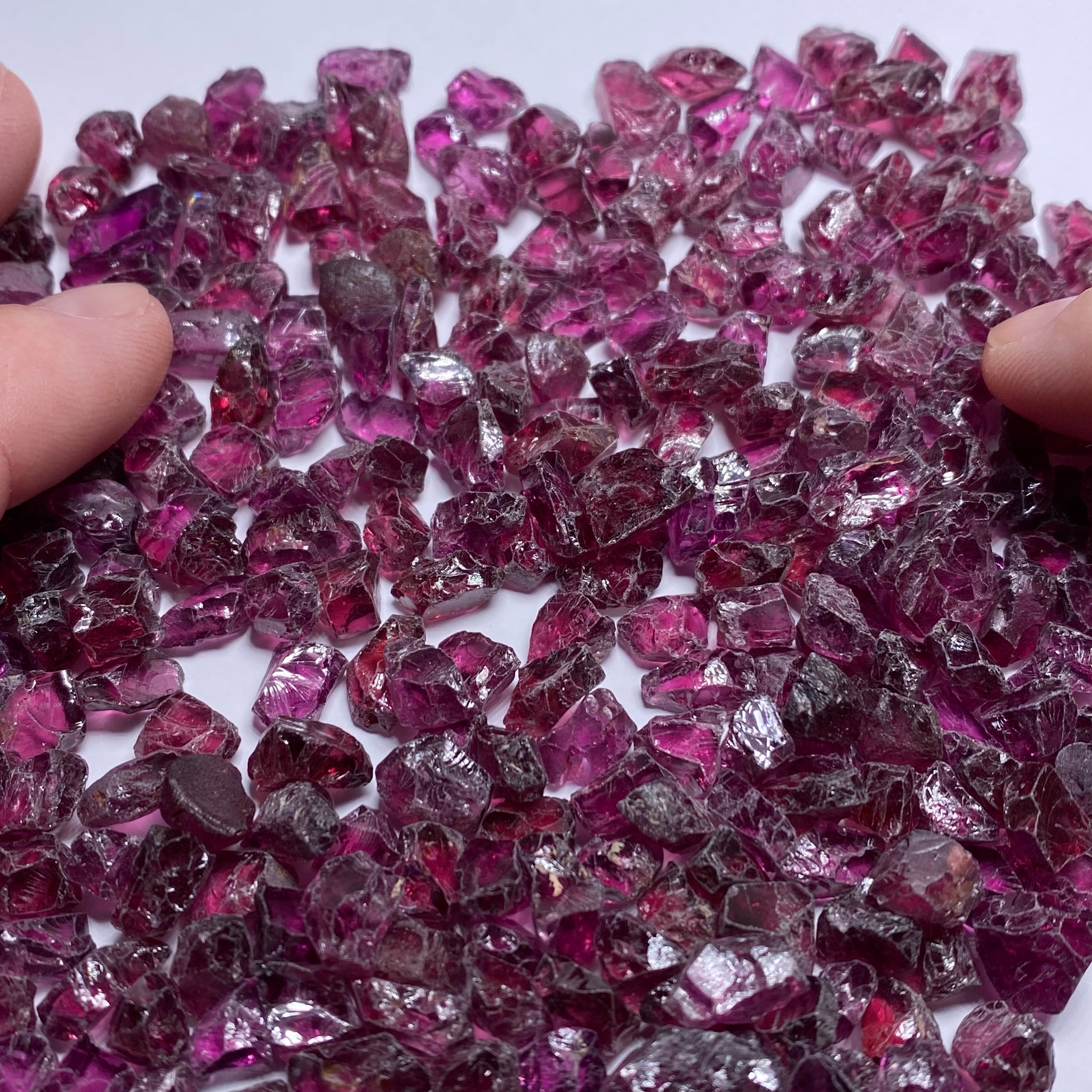 Rhodolite Garnets from Tanzania. This is old-stock material we found tucked away in the vault and so we decided to offer it in our popular bulk section. Please note that since these photos were taken, we mixed a few old-stock parcels together. Some may be alluvial and slightly different colors than the photos