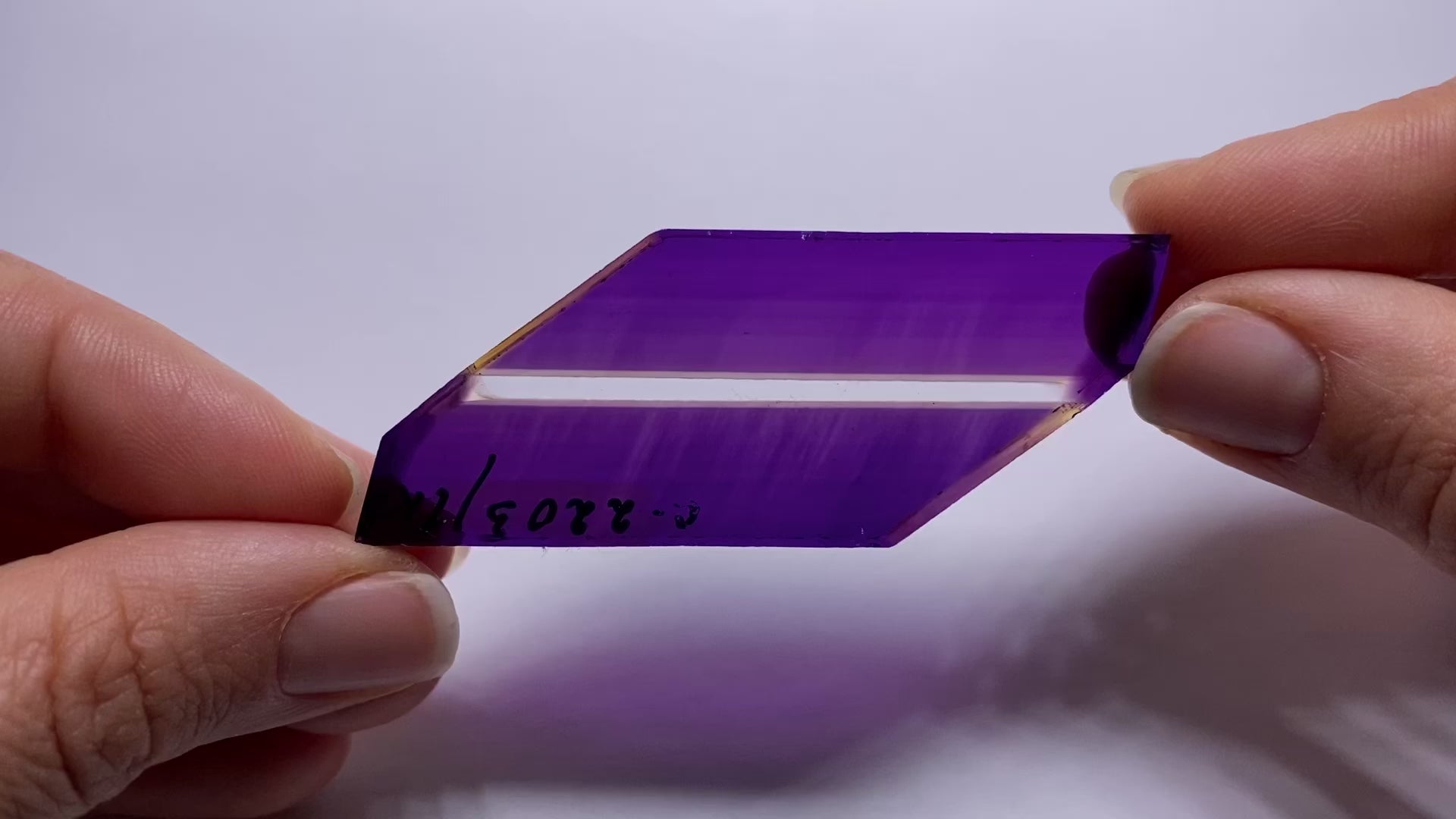 Old material from Russia that was made during the Soviet era. The clear stripe is from the seed crystal that was used to grow the piece. Russian synthetic quartz was often grown using the hydrothermal method. This process involves dissolving silica in a superheated solution and allowing it to crystallize on a seed crystal, resulting in high-purity quartz with excellent optical properties. The white line from the seed crystal is a characteristic feature of this growth method