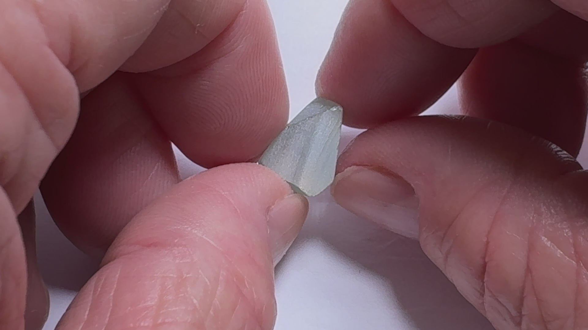 The rough has been ground clean thus the chalky, dull surface - shown slightly damp